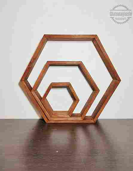خرید شلف شش ضلعی چوبی